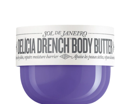 Про дуже суху шкіру, що лущиться, подбає батер для тіла Sol de Janeiro Delicia Drench. Це пом’якшувальне масло зробить вашу шкіру оксамитово-ніжною і забезпечить необхідним живленням. Заспокійливий комплекс зменшить подразнення, масло бакурі зміцнить захисний бар’єр шкіри, а пребіотичний гібіскус живить природний мікробіом шкіри. Масло утримує вологу та зменшує надмірну сухість шкіри. Крем має вишуканий аромат, схожий із теплом заходу сонця з підбадьорливими нотами ванільної орхідеї, цукрової фіалки та чистого сандалового дерева.