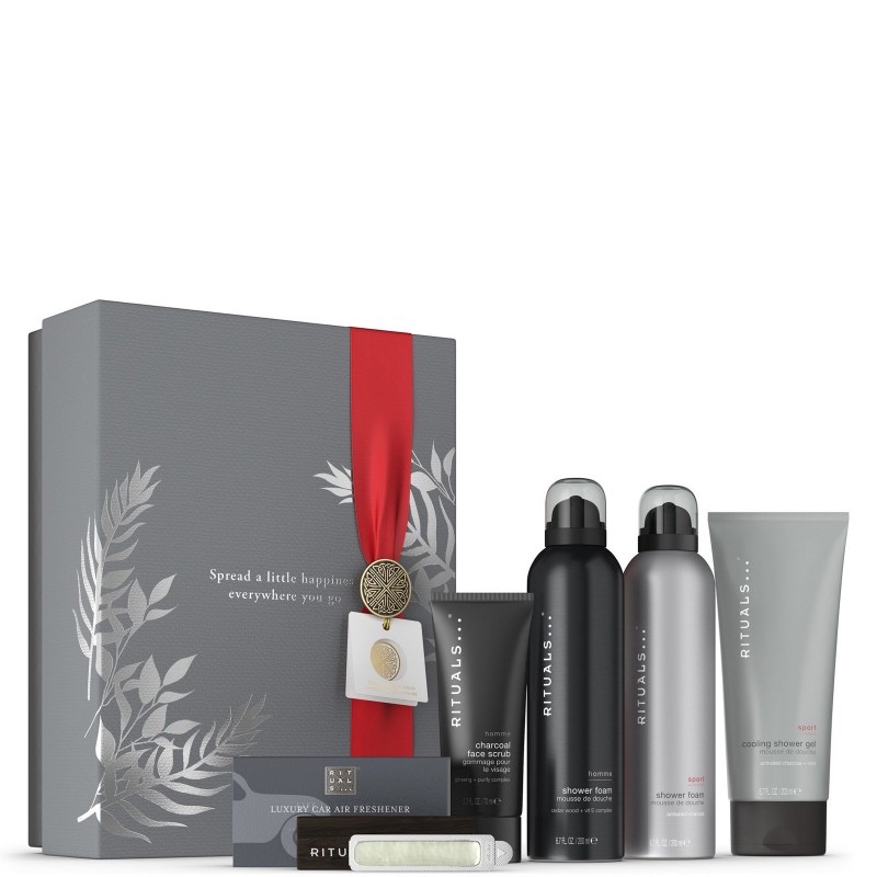 Gift set homme sport size LПодарунковий набір (аромат в машину+пінка для душу+скраб для обличчя+гель для душу)