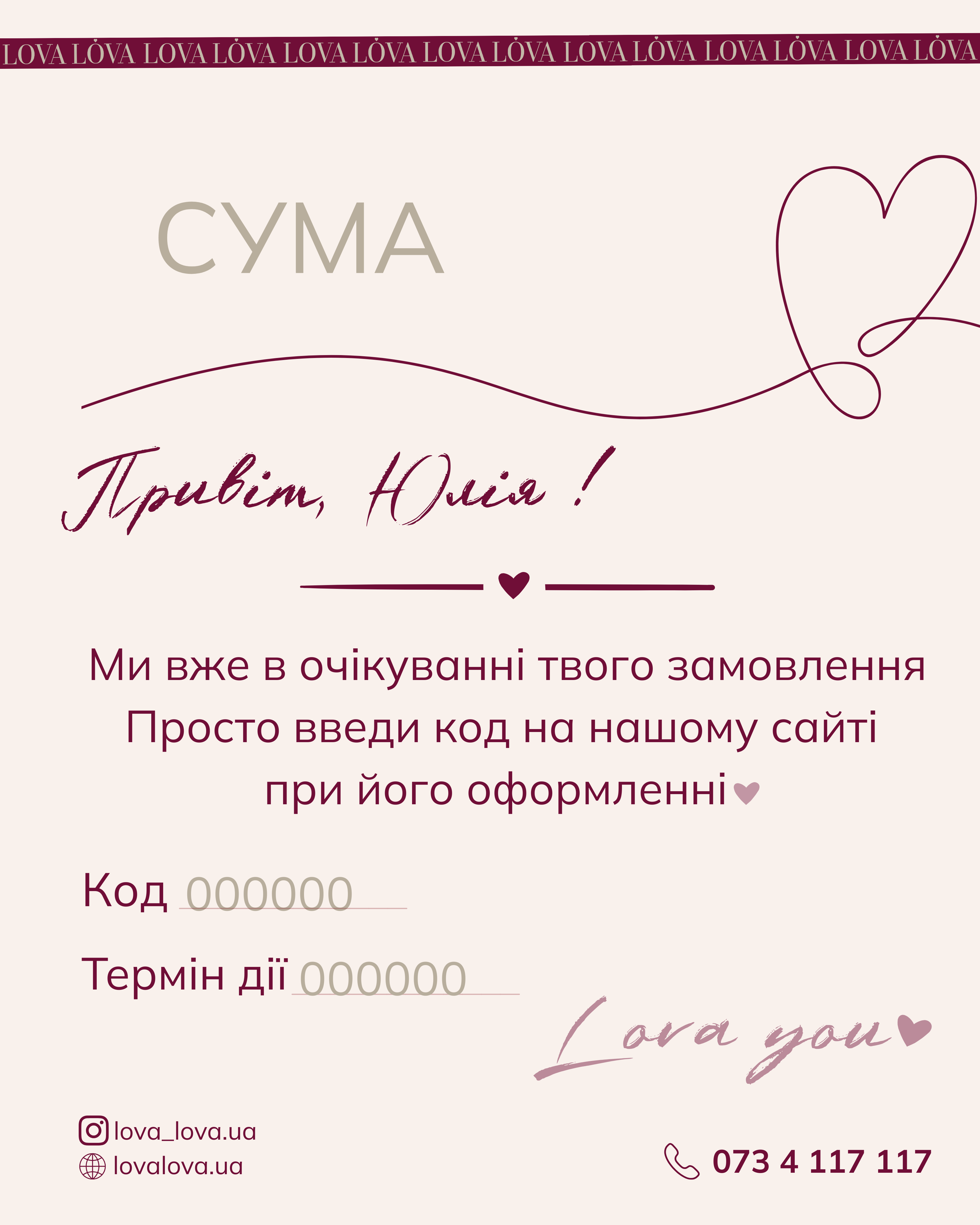 Сертифікат діє лише для онлайн-покупок на нашому сайті.
