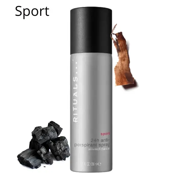 Антиперспірант-спрей Rituals Sport Collection з активованим вугіллям допомагає зберігати сухість і свіжість до 24 годин. Він створений для тих, хто веде динамічний спосіб життя, тож легко справляється навіть із підвищеним навантаженням і спекою.