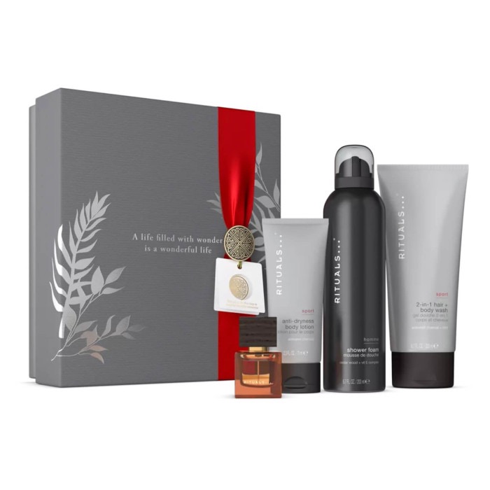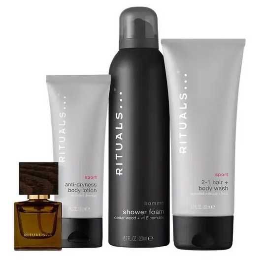 Набір The Ritual of Homme від бренду Rituals 一 це гарантія приємних спа-процедур для тіла. Засоби надають шкірі повноцінний догляд зі зволоженням, живленням і очищенням.
