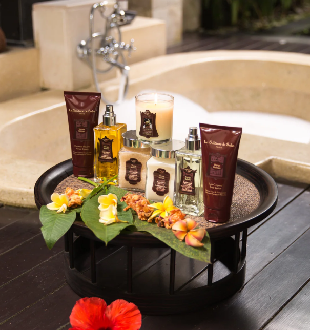 - Скраб для тіла (Body Scrub) (100ml): Sodium Chloride (сіль, як ексфоліант), Caprylic/Capric Triglyceride, Helianthus Annuus (Sunflower) Seed Oil, Glyceryl Stearate, Butyrospermum Parkii (Shea) Butter, PEG-100 Stearate, Parfum (Fragrance), Lotus Corniculatus Flower Extract (екстракт лотоса), Plumeria Rubra Flower Extract (екстракт франжипані), Tocopherol, Linalool, Hexyl Cinnamal, Benzyl Salicylate, Citronellol, Limonene. Олійка для тіла (Body Oil) Склад: Caprylic/Capric Triglyceride, Helianthus Annuus (Sunflower) Seed Oil, Coco-Caprylate/Caprate, Parfum (Fragrance), Adansonia Digitata Seed Oil (Baobab Oil), Macadamia Ternifolia Seed Oil, Tocopherol, Limonene, Linalool, Hexyl Cinnamal, Citronellol, Benzyl Salicylate, Geraniol, Citral. Баттер для тіла (Shea Butter) Склад: Butyrospermum Parkii (Shea) Butter, Caprylic/Capric Triglyceride, Parfum (Fragrance), Helianthus Annuus (Sunflower) Seed Oil, Glycine Soja (Soybean) Oil, Tocopherol, Linalool, Hexyl Cinnamal, Benzyl Salicylate, Citronellol, Limonene, Geraniol.