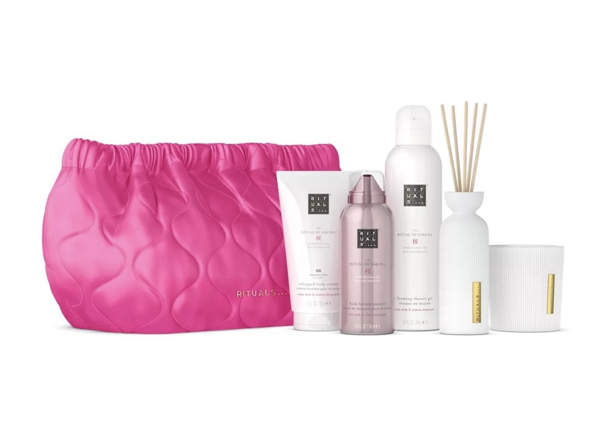 Gift set Sakura 6pcsПодарунковий набір (аромадифузор+пінка для душу+свічка+крем для тіла+мус для тіла+косметичка)
