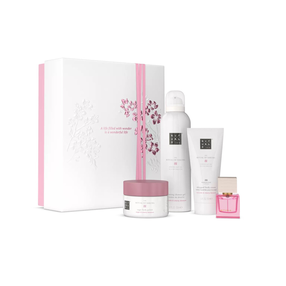 Gift set Sakura size M whiteПодарунковий набір (скраб для тіла+пінка для душу+крем для тіла+парфум)