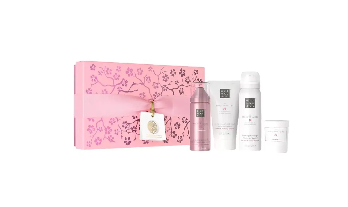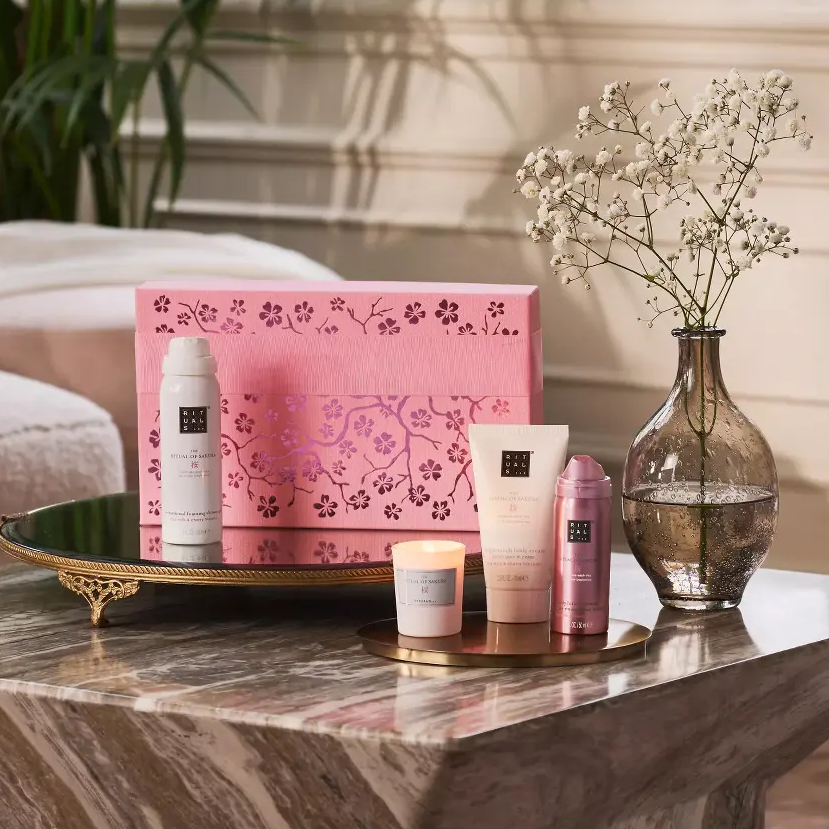 The Ritual of Sakura Foaming Shower Gel: Aqua/Water, Sodium Laureth Sulfate, Cocamidopropyl Betaine, Isopentane, Sorbitol, Isopropyl Palmitate, Parfum/Fragrance, Isobutane, PEG-120 Methyl Glucose Dioleate, Glycerin, Sodium Benzoate, Citric Acid, PEG-40 Hydrogenated Castor Oil, Guar Hydroxypropyltrimonium Chloride, Oryza Sativa (Rice) Extract, Prunus Serrulata Flower Extract, Sodium Sulfate, Benzyl Salicylate, Cinnamyl Alcohol, Citronellol, Coumarin, Geraniol, Hexyl Cinnamal, Linalool, Alpha-Isomethyl Ionone. The Ritual of Sakura Body Scrub: Sodium Chloride, Maris Sal, Helianthus Annuus (Sunflower) Seed Oil, Prunus Amygdalus Dulcis (Sweet Almond) Oil, Oryza Sativa (Rice) Extract, Prunus Serrulata Flower Extract, Parfum/Fragrance, Phenoxyethanol, Ethylhexylglycerin, Tocopherol, Aqua/Water, Benzyl Salicylate, Cinnamyl Alcohol, Citronellol, Coumarin, Geraniol, Hexyl Cinnamal, Linalool, Alpha-Isomethyl Ionone. The Ritual of Sakura Body Mousse: Aqua/Water, Coco-Caprylate/Caprate, Butyrospermum Parkii (Shea) Butter, Butane, Glycerin, Isopropyl Myristate, Dicaprylyl Ether, Propane, Cetearyl Alcohol, Cetearyl Glucoside, Parfum/Fragrance, Prunus Avium (Sweet Cherry) Fruit Extract, Oryza Sativa (Rice) Extract, Phenoxyethanol, Sodium Lauroyl Sarcosinate, Stearic Acid, Betaine, Xanthan Gum, Caprylyl Glycol, Sodium Stearoyl Glutamate, Citric Acid, Potassium Sorbate, Isobutane, Hexyl Cinnamal, Benzyl Salicylate, Linalool, Coumarin, Citronellol, Geraniol, Alpha-Isomethyl Ionone, Cinnamyl Alcohol, Limonene, Sodium Chloride, Propylene Glycol, Isoeugenol, Citral, Tocopherol, Sodium Citrate, Sorbic Acid, Sodium Metabisulfite. The Ritual of Sakura Scented Candle: Cis-4-Tert-Butylcyclohexyl Acetate, Benzyl Salicylate, Citronellol, Piperonal, Linalyl Acetate, 1-(1,2,3,4,5,6,7,8-Octahydro-2,3,8,8-Tetramethyl-2-Naph-thyl Ethan-1-One, 3-Methyl-4-(2,6,6-Trimethyl-2-Cyclohexen-1-yl)-3-Buten-2-One, 3-P-Cumenyl-2-Meth-ylpropionaldehyde, Linalool, (E)-2-Methoxy-4-(Prop-1-Enyl) Phenol, (d)-Limonene, (2E)-2-(Phenylme-thylidene)Octanal.