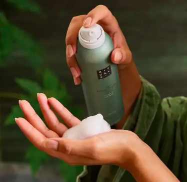 Піна для душу Rituals – косметичний засіб на рослинній основі, м’яко та делікатно видаляє бруд, пил та надлишки шкірного жиру. Невагома піна містить олії, що заповнюють нестачу вологи в клітинах, зволожують та живлять шкірний покрив. Піна не порушує гідроліпідний баланс, заспокоює подразнену шкіру, при регулярному застосуванні шкіра набуде м’якості, шовковистості та пружності.