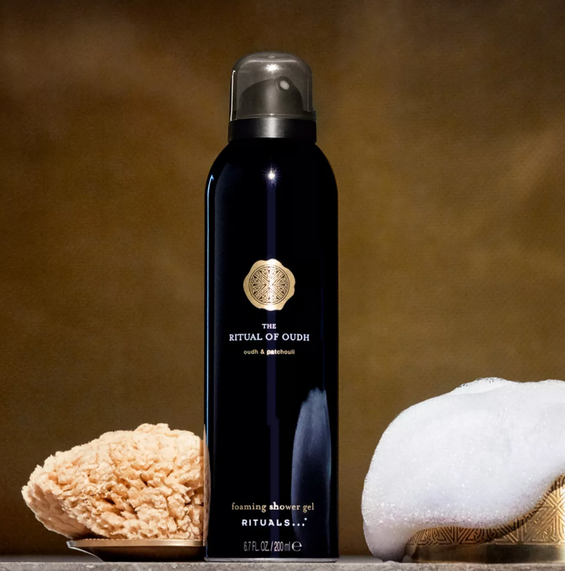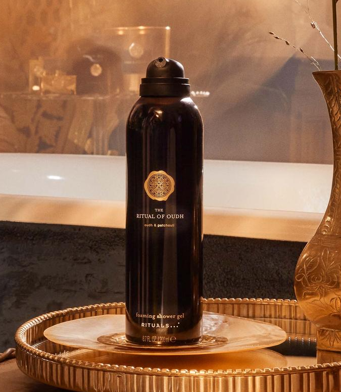 Піна для душу Rituals – косметичний засіб на рослинній основі, м’яко та делікатно видаляє бруд, пил та надлишки шкірного жиру. Невагома піна містить олії, що заповнюють нестачу вологи в клітинах, зволожують та живлять шкірний покрив. Піна не порушує гідроліпідний баланс, заспокоює подразнену шкіру, при регулярному застосуванні шкіра набуде м’якості, шовковистості та пружності. Ноти аромату:Уд і пачулі