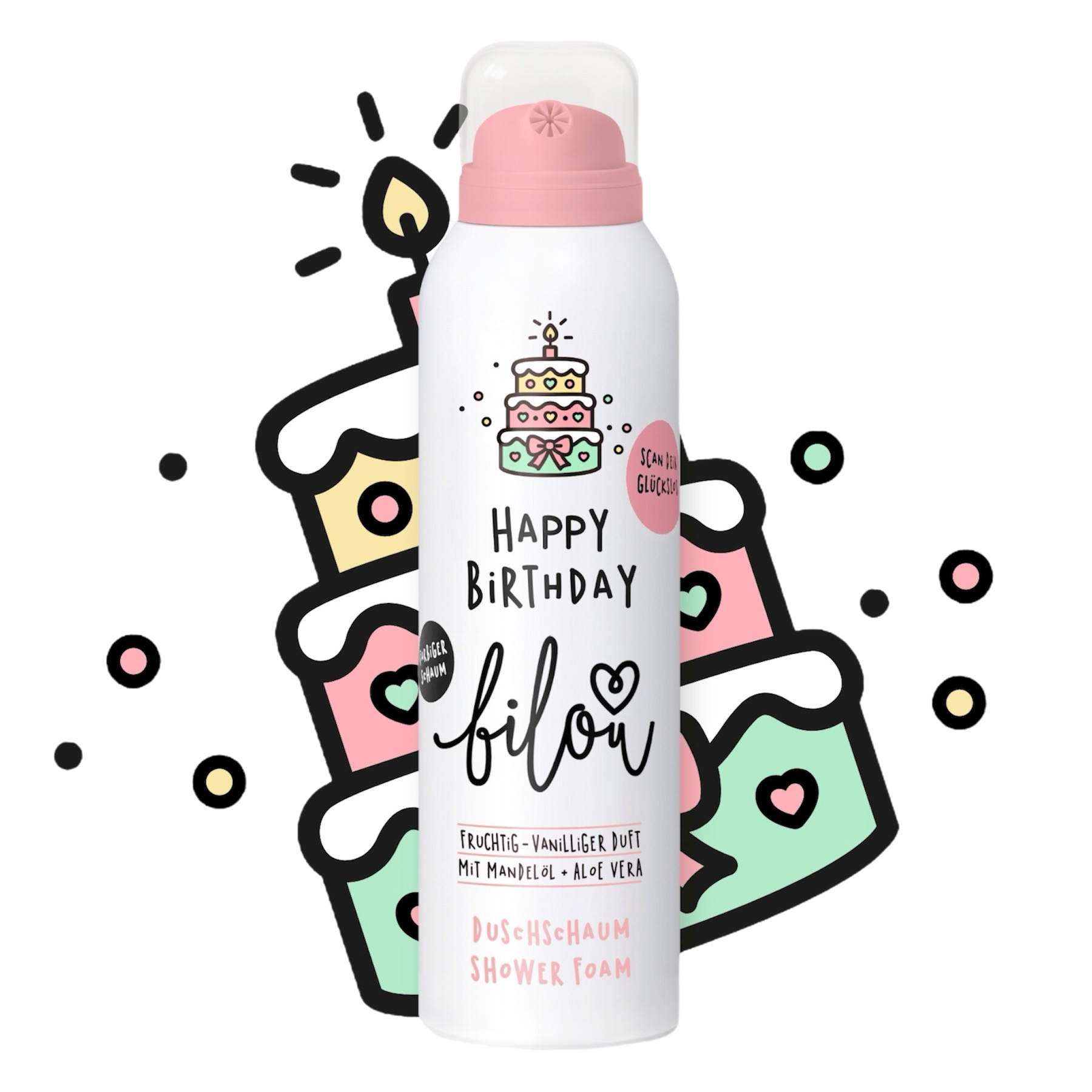 Лімітована пінка для душу з ароматом солодкого свіжоспеченого іменинного торту до 10 дня народження бренду Bilou. Ніжна пінка дбайливо очищає тіло від бруду та себуму, не пересушуючи шкіру. Засіб підходить для всіх типів шкіри, адже не порушує кислотно-лужний баланс. Пінка від Bilou має неймовірний аромат, який залишається на тілі та освіжає протягом всього дня. Особливості Happy Birthday: - пінка має рожевий колір; - має аромат свіжоспеченого святкового торту - фруктовий, солодкий та ванільно-м’який; - делікатно очищає шкіру від забруднень і надлишків себуму; - не пересушує епідерміс; - активно зволожує та пом'якшує шкірний покрив; - не дає відчуття стягнутості; - економно витрачається завдяки консистенції; - дуже швидко дає велику кількість піни; - обладнаний зручним дозатором; - придатний для щоденного застосування; - не спричиняє подразнення чи алергію; - залишає на тілі приємний запах довгий час.
