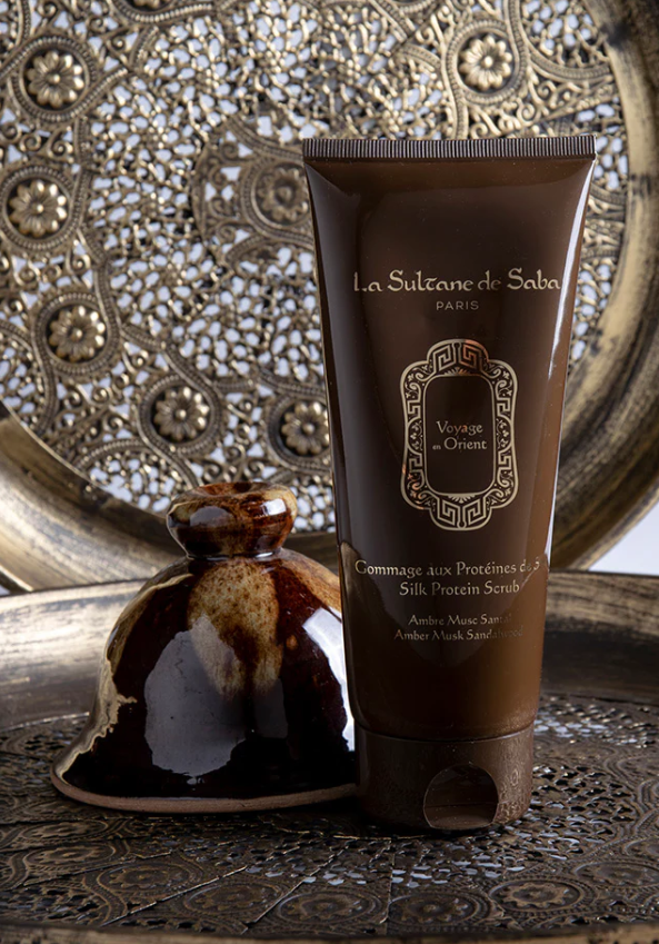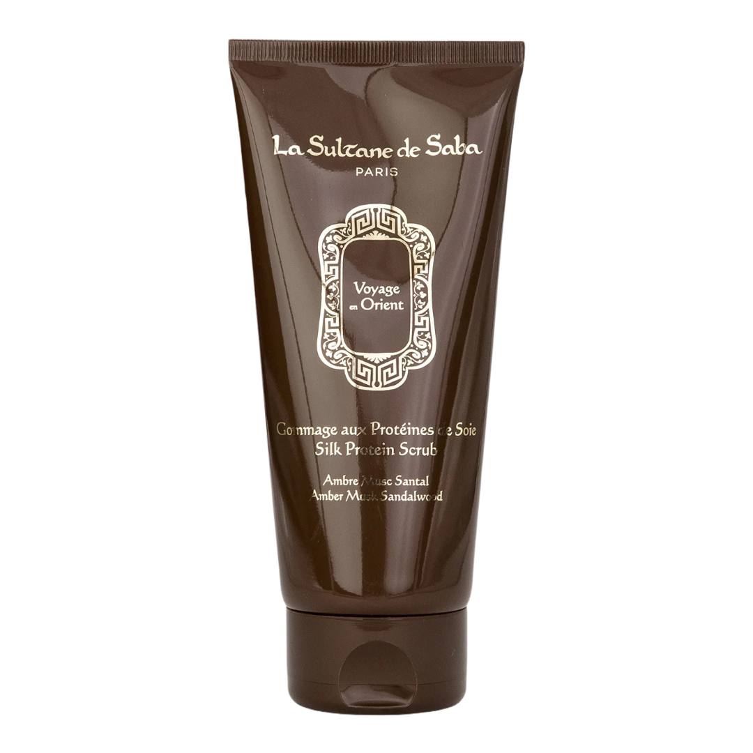 Скраб з бурштиновим мускусом та шовковим протеїном від La Sultane De Saba подарує ніжне, але ефективне відлущування вашій шкірі. Формула, заснована на протеїнах шовку, розгладжує і зміцнює, видаляє шкіру, що омертвіла, підтримуючи оптимальний рівень зволоження. М’яко очищає шкіру та видаляє омертвілі клітини епідермісу. Залишаючи на шкірі легкий вуаль ніжного аромату. Багата протеїном основа гомажу надає шкірі еластичність і бархатистість. Активні компоненти : Тростинний цукор – має знеболювальну, відхаркувальну, бактерицидну та протизапальну дію. Прекрасно зміцнює, тонізує і розгладжує шкіру, надає їй здорового кольору і сяйва. Також він усуває закупорку сальних залоз, ефективно очищає пори та м’яко відлущує відмерлі клітини шкіри. Протеїни шовку У протеїнів шовку невелика молекулярна вага, завдяки чому вони швидко і легко вбираються шкірою, забезпечуючи її корисними речовинами. Вони сприяють відновленню пошкоджених ділянок шкіри, підвищують її вологоутримуючі властивості. Завдяки цьому, шкіра стає більш пружною, еластичною та сяючою. Базові ноти: Амбра, Мускус, Сандал Верхні ноти: Лимон, Рок-Роуз, Листя апельсинового дерева, Мускатний горіх Середні ноти: Ірис, Кедр, Ветивер