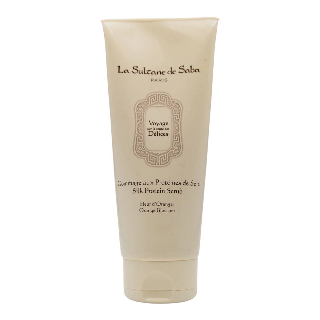 Скраб з бурштиновим мускусом та шовковим протеїном від La Sultane De Saba подарує ніжне, але ефективне відлущування вашій шкірі. Формула, заснована на протеїнах шовку, розгладжує і зміцнює, видаляє шкіру, що омертвіла, підтримуючи оптимальний рівень зволоження. М’яко очищає шкіру та видаляє омертвілі клітини епідермісу. Залишаючи на шкірі легкий вуаль ніжного аромату. Багата протеїном основа гомажу надає шкірі еластичність і бархатистість. Активні компоненти : Тростинний цукор – має знеболювальну, відхаркувальну, бактерицидну та протизапальну дію. Прекрасно зміцнює, тонізує і розгладжує шкіру, надає їй здорового кольору і сяйва. Також він усуває закупорку сальних залоз, ефективно очищає пори та м’яко відлущує відмерлі клітини шкіри. Протеїни шовку У протеїнів шовку невелика молекулярна вага, завдяки чому вони швидко і легко вбираються шкірою, забезпечуючи її корисними речовинами. Вони сприяють відновленню пошкоджених ділянок шкіри, підвищують її вологоутримуючі властивості. Завдяки цьому, шкіра стає більш пружною, еластичною та сяючою. Верхні ноти: Свіжий Бергамот Солодкий Апельсин Ноти серця: Насичений Цвіт апельсина (Флердоранж), Жасмин, Тубероза Базові ноти: Теплий Мускус, Солодкувата Ваніль, М'який Сандал
