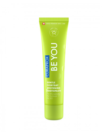 CURAPROX be you green – це зубна паста, яка надає м’яке відбілювання зубів з ноткою свіжості та сміливими смаками. Зубна паста має м’який і природний відбілюючий ензимний ефект, а також силу ментолових перлин, для довготривалого відчуття свіжості. Green – це свіже зелене яблуко з соковитим алое вера, а в якості акомпанементу – спалах м’яти і ментолу. Зубна паста представлена в об’ємі 60 ml. Ензиматичне відбілення від ‘Be you’, і як це працює: Ензимна глюкозооксидоза перетворює цукор у перекис водню і врешті-решт у кисень. Це відбілювання знебарвлює потемніння на емалі на зубах та водночас стимулює власну лактопероксидазну систему організму, що підтримує здорову флору у ротовій порожнині. Плюс оптичне відбілення PrestigeSparklingBlue відбиває синє світло. Близька людина відразу ж візуально помітить білизну зубів. Гідроксилапатит ремінералізує і вирівнює зубну емаль, а це зменшує появу карієсу. Характеристика засобу: Сила перлин: велика кількість ментолу для надзвичайно тривалого відчуття свіжості та для особливо м’якого чищення. Зубна паста: фтори (моно фтор фосфат натрію). Гідроксиапатит, глюкозооксидоза, ксилітом. Екстракти трав: ехінацеї (Ехінацея пурпурна), гіркий апельсин (померанець), жовтець польовий (гарпагофітум). Індійський щитолисник (центела азіатська) Вітаміни: провітамін B5 (пантенол) Не містить SLS, триклозану, синтетичних мікрочасточок RDA біля 50