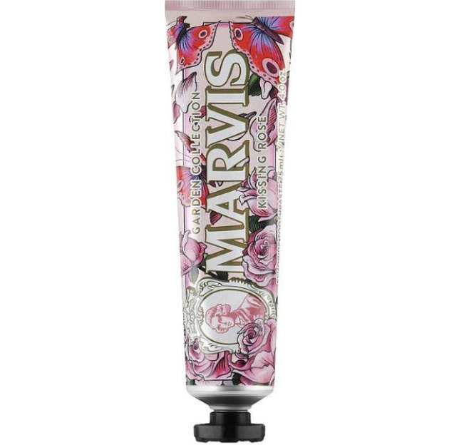 Зубна паста Marvis Kissing Rose майстерно поєднує романтичну атмосферу з виразним смаком, який наповнить вашу посмішку ароматними нотами болгарської троянди та м’ятою, що освіжає. Вишуканий смак, натхненний світом тонких ароматів.