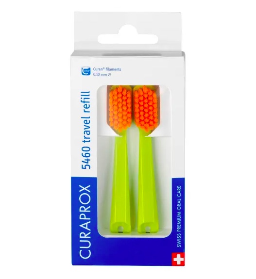 CURAPROX travel refill – це набір з двох змінних (запасних) насадок щітки 5460 Ultra Soft для дорожнього набору.