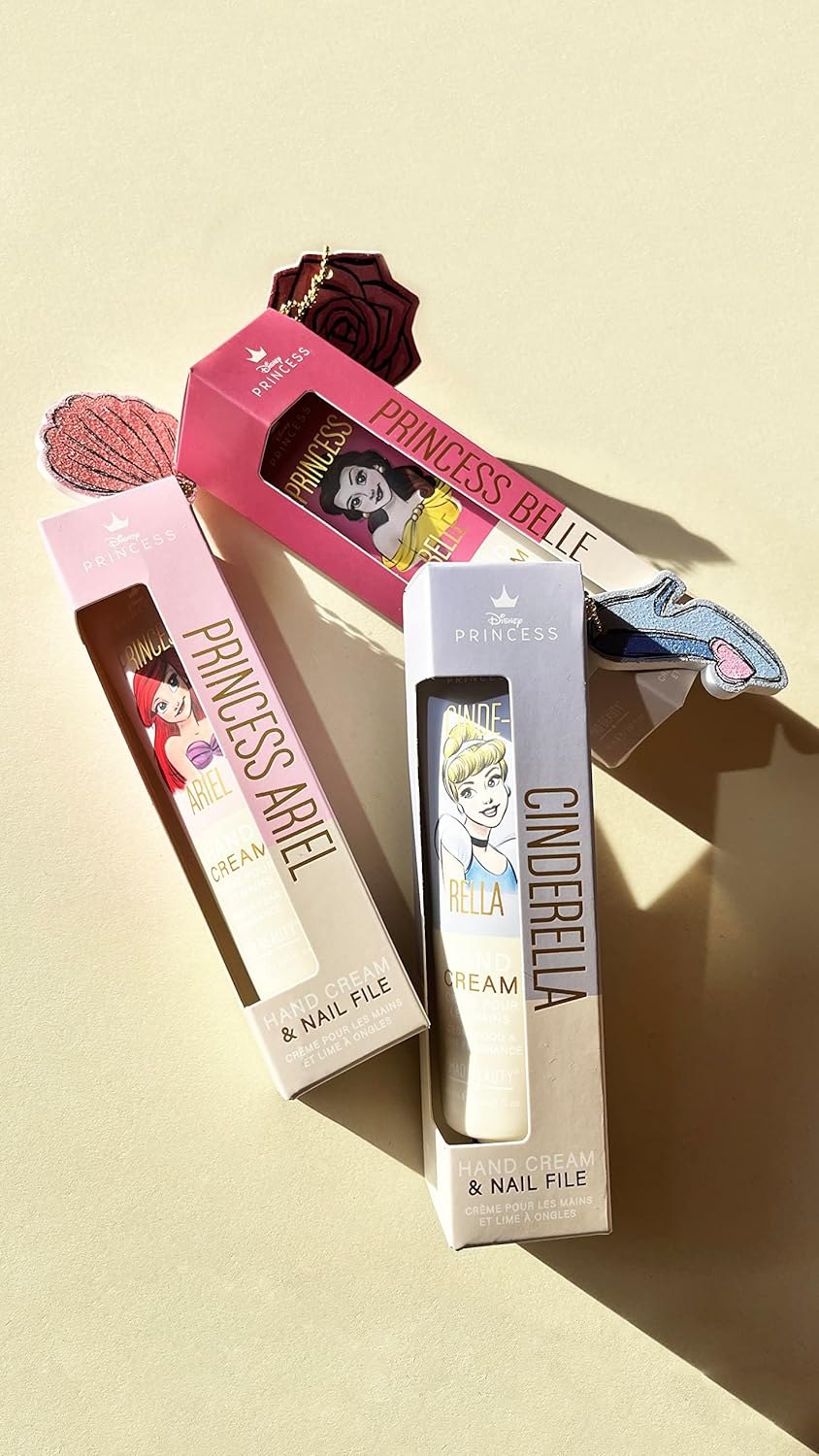Потіште свої руки якісним доглядом із кремом, натхненним Disney Princess. Зручний формат із вбудованою пилочкою для нігтів у силуеті улюбленої принцеси робить цей засіб ідеальним супутником у дорозі та щоденній сумці. Живильна формула збагачена маслом каріте, яке глибоко зволожує, пом’якшує та допомагає підтримувати шкіру рук гладенькою й доглянутою. Колекція представлена трьома чарівними ароматами: Ariel — імбир і груша, Cinderella — кедр і лайм, Belle — темні фрукти. Ідеальний вибір для тих, хто шукає ефективний догляд із ноткою Disney-магії.