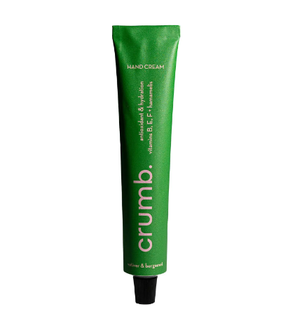 Крем для рук від українського бренду доглядової косметики CRUMB живить, зволожує, підтримує водно-ліпідний баланс, дарує гладкість, ніжність і еластичність. Має надзвичайно красивий аромат та легко поглинається шкірою. Серед активних компонентів містить олію рисових висівок, авокадо, ши, какао, Д-пантенол, екстракт гамамелісу, вітаміни F, B, Е. Активні компоненти крему: Вітамін F: сприяє відновленню ліпідного балансу шкіри і формуванню її захисного бар’єру. Вітамін Е: зберігає молодість шкіри, прискорює клітинне оновлення, допомагає убезпечити епідерміс від впливу ультрафіолетового випромінювання, має антиоксидантний ефект, захищаючи клітини епідермісу і структурні білки – колаген та еластин – від руйнування вільними радикалами, в результаті чого шкіра розгладжується й підтягується. Вітамін групи В: стимулює регенерацію шкіри, нормалізує клітинний метаболізм, прискорює мітоз і зміцнює колагенові волокна. Має регенеруючу, метаболічну та слабку протизапальну дію. Захищає від згубного впливу вологи та вітру, виступає як антиоксидант. Екстракт гамамелісу: тонізує шкіру, пом’якшує її та позбавляє лущення, має сильні антиоксидантні властивості, оберігає шкіру від УФ-випромінювання, заспокоює та прискорює загоєння шкіри після сонячних опіків, стимулює затягування тріщин та подряпин.