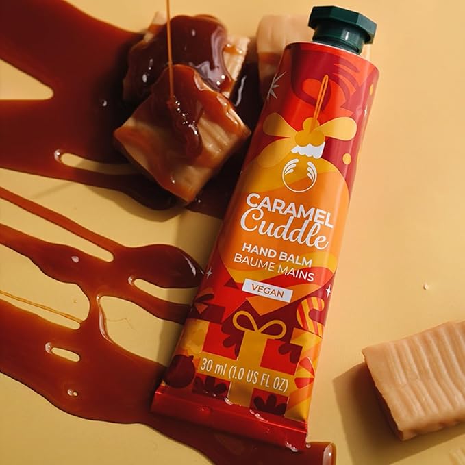 Теплий аромат карамелі та ванілі огортає, немов затишний плед, і створює святковий настрій з першого дотику. Крем-бальзам робить руки м’якими, гладенькими й доглянутими без липкості, тож ідеально підходить для щоденного використання — вдома, на роботі чи в дорозі.