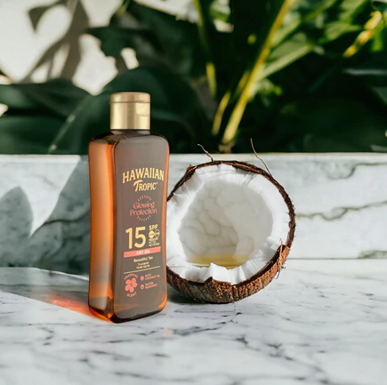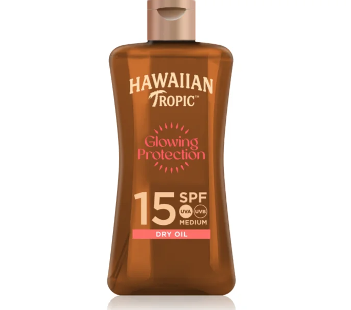 Суха олійка для засмаги від бренду Hawaiian Tropic захищає шкіру від сонячних опіків і водночас забезпечує їй інтенсивне живлення. Засіб створює ефективний бар’єр від UVA- та UVB-променів, запобігаючи передчасному старінню шкіри. Натуральні олії та рослинні екстракти у складі зволожують, пом’якшують і живлять шкіру, надаючи їй шовковистості та доглянутого вигляду. Легка текстура швидко вбирається, не залишаючи липкої плівки, а культовий тропічний аромат Hawaiian Tropic огортає тіло соковитими нотами, створюючи відчуття відпочинку на пляжі. Завдяки водостійкій формулі олійка зберігає свої властивості навіть після купання, даруючи шкірі сяйво, комфорт і надійний захист протягом усього дня.