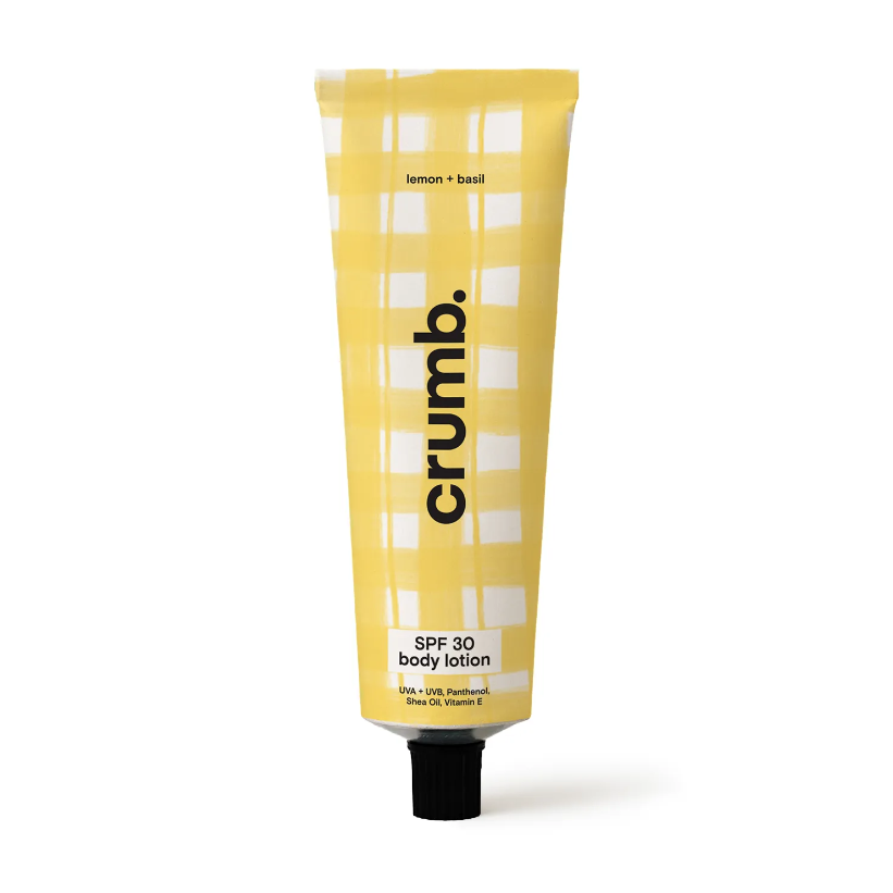 CRUMB SPF30 Lemon and Basil засіб, розроблений для ефективного захисту шкіри від шкідливого впливу сонячних променів. Цей лосьйон забезпечує високий рівень захисту SPF30, оберігаючи шкіру від UVA та UVB випромінювання, що є ключовим для запобігання сонячних опіків та передчасного старіння. Його легка текстура швидко вбирається, не залишаючи відчуття липкості, та інтенсивно зволожує шкіру, зберігаючи її м’якість та еластичність під час перебування на сонці.