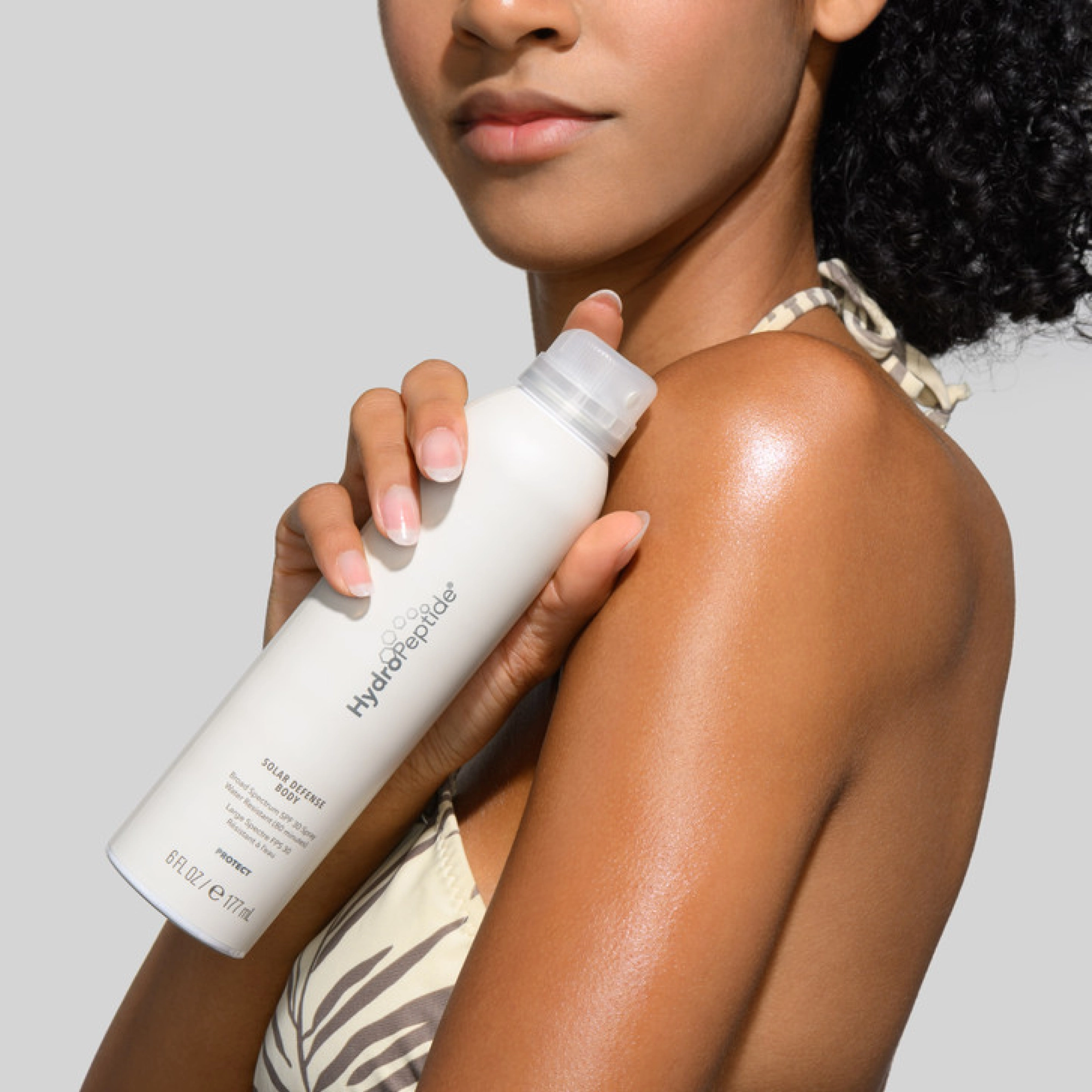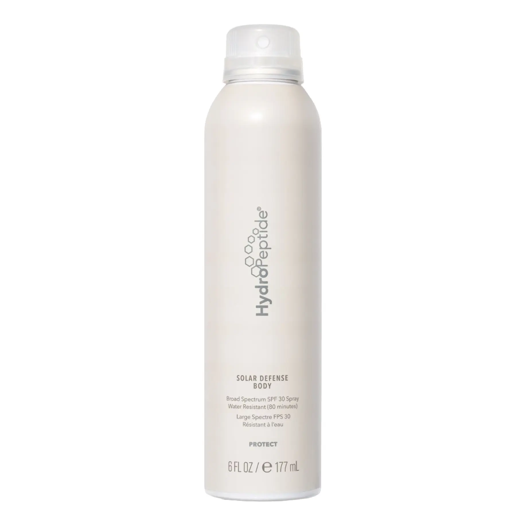 HYDROPEPTIDE solar defense body spray SPF30 - цепрофесійний сонцезахисний спрей для тіла, який вирізняється своєю доглядовою формулою та якісним захистом. Засіб працює не лише як екран від сонця, а як омолоджувальна сироватка. Він ідеально підходить для тих, хто цінує комфорт, швидкість нанесення та преміальні аромати.