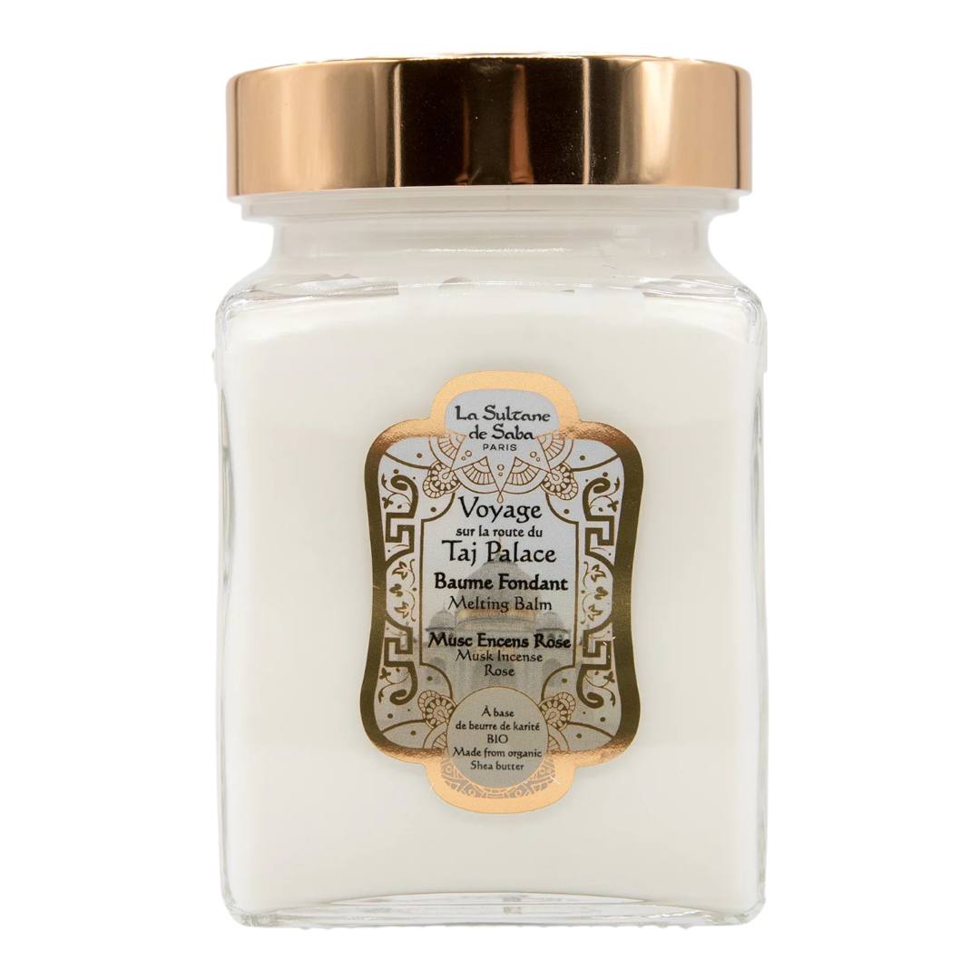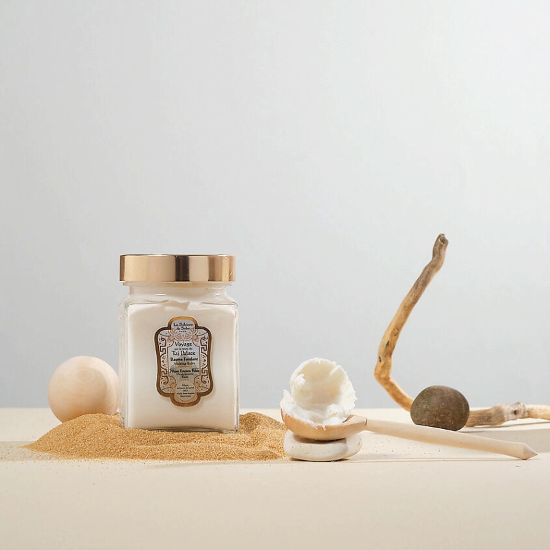 Бальзам має щільну текстуру, яка тане при контакті зі шкірою. Він досить економічний у використанні та дарує приємний квітковий аромат. Це універсальний засіб, що підходить для зволоження шкіри та волосся. Він глибоко зволожує шкіру та утримує потрібний рівень вологи у клітинах. Засіб робить вашу шкіру ніжною, м’якою та сяючою, насичує її мінеральними речовинами та мікроелементами. Також він працює над усуненням слідів вікових змін, покращує еластичність шкіри та розгладжує її. Також він пом’якшує і волосся, зволожує його та залишає неймовірне сяйво. Ключові інгредієнти Олія солодкого мигдалю відмінно загоює порізи, тріщини і усуває подразнення шкіри. Вона також зволожує та пом’якшує дерму, залишає невідчутну плівку для захисту від втрати вологості. Олія Ши має антиоксидантні властивості, захищає шкіру та волосся від шкідливого впливу вільних радикалів. Вона наповнює дерму вітамінами та мінералами, необхідними для молодості та здоров’я клітин. Також масло відмінно зволожує шкіру, розгладжує зморшки та покращує тонус. Кокосова олія відома своїми зволожуючими та регенеративними властивостями. Вона має антибактеріальний та протигрибковий ефект, допомагає боротися з подразненням шкіри, стимулює вироблення колагену та захищає від ультрафіолетових променів. Також вона усуває лущення, сприяє оновленню клітин та є антиоксидантом. Арганова Олія має пом’якшувальну та загоювальну дію, покращує еластичність шкіри та запобігає розтяжкам, ефективно бореться з прищами та заспокоює роздратування. Верхні ноти: бергамот, мандарин. Ноти серця: жасмин, троянда, іланг-іланг. Базові ноти: пачулі, ваніль, сандалове дерево.