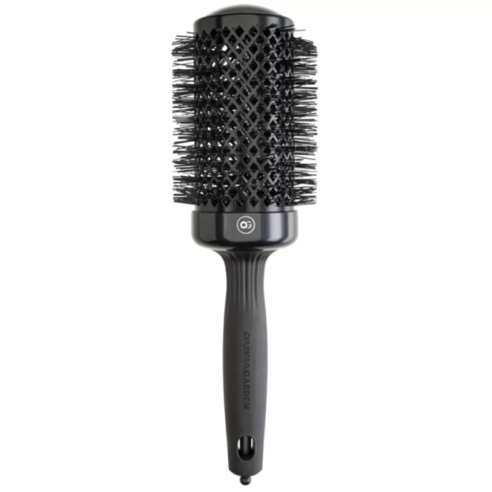 Новітнє покоління професійних брашей Olivia Garden з більш гладким, легким і безшовним дизайном є найпопулярнішим продуктом на світовому ринку. Перевага даної серії термобрашів полягає в наявності керамічного покриття з негативно зарядженими іонами завдяки яким в процесі укладання відсутній статичний ефект, а волосся набуває дзеркального блиску. Щетина з термостійкого нейлону з легкістю розплутує навіть найбільш неслухняні пасма, не пошкоджуючи їх структуру. Брашинг має зручну прогумовану ручку, яка дозволяє надійно тримати його в руці і спеціальний хвостик для поділу та виділення пасом. Наскрізні отвори в керамічному корпусі щітки продуваються гарячим повітрям фена, що дозволяє забезпечити швидке висихання волосся. Характеристика щітки: Тип товару – Термобрашинг Серія – Expert Лінійка – Shine Black Розмір – 54 мм Захист волосся – Іонізація Тип щетини – Термостійкий нейлон Країна виробництва – Корея Країна бренду – Бельгія