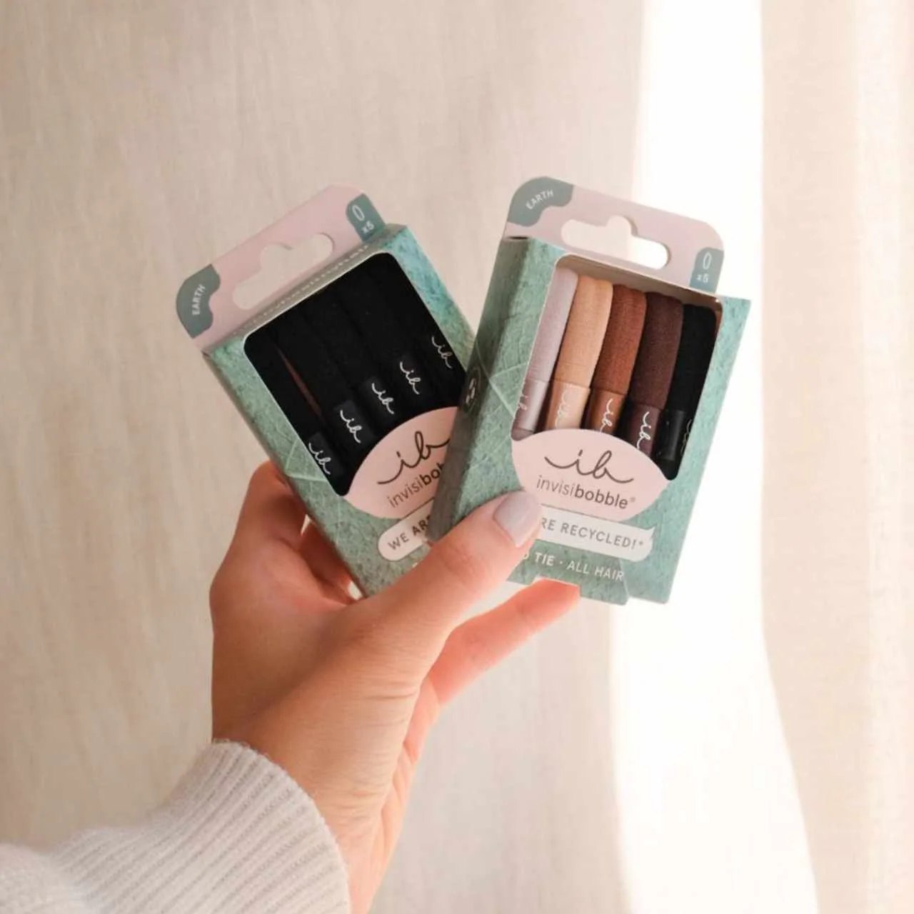 Набір резинок Invisibobble HAIR TIE з 5 штук пропонує незамінні резинки для волосся, що створені за допомогою HAIRLOVETECH™ і є частиною колекції Earth. Ці резинки мають стійкі матеріали та безшовний дизайн для зручної та надійної фіксації, що підходить для всіх типів волосся. Дані резинки мінімізують пошкодження, сліди та дискомфорт. Це гармонійне поєднання стійкості та здорового стану волосся, що забезпечує шикарний вигляд. У наборі 5 резинок Hair Tie. Особливості invisibobble HAIR TIE: виготовлені на 65% з перероблених екологічно чистих матеріалів; елегантний та стриманий дизайн, безшовні; має високий рівень зносостійкості; створює рівномірний тиск на волосся, не пошкоджуючи його; запобігає ламкості та посіченості; не намокає, не сповзає, не розтягується; підходить для будь-якого типу волосся. Габарити: 6,4х2,5х10,5 см