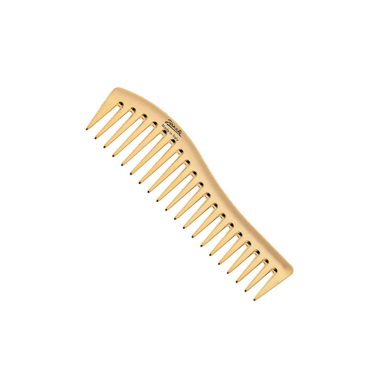 Janeke Gold Wavy Comb – це гребінь Janeke з лімітованої «золотої» колекції бренду, що має хромоване покриття, завдяки чому має антистатичний вплив на волосся. Його можна використовувати для розчісування волосся будь-якого типу, для надання текстури локонів у зачісці, а також для нанесення гелю чи інших стайлінгових засобів!