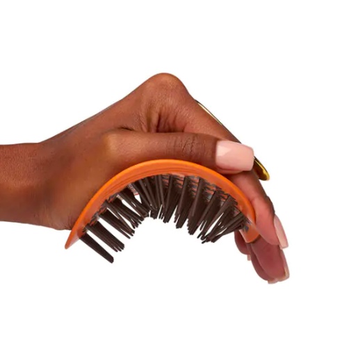Щітка для хвилястого та кучерявого волосся MANTA® Kinks, Coils & Curls Healthy Hair Brush створена з урахуванням потреб пористого та текстурованого волосся. У порівнянні з класичними щітками бренду, Kinks Coils & Curls Healthy Hair Brush має подовжені щетинки, які ефективніше розплутують хвилясті локони від коріння до кінчиків. Запатентована технологія FLEXGUARD™ забезпечує обертання щетинок на 360°, завдяки чому розчісування навіть сплутаного волосся легке та комфортне. Щітка для хвилястого та кучерявого волосся представлена в помаранчевому кольорі. Одна з унікальних переваг цієї щітки — відсутність електризації волосся під час розчісування. А завдяки спеціальному силіконовому матеріалу та адаптації до форми й рухів долоні, MANTA® Kinks Coils & Curls Healthy Hair Brush не пошкоджує шкіру голови та не створює стресу для волосся. В результаті звичайного ритуалу ви отримуєте догляд та здоровий блиск щодня. Без зламаних кінчиків та вузликів. Разом з розчісуванням MANTA® Kinks Coils & Curls Healthy Hair Brush забезпечує делікатний масаж голови з легким скрабуючим ефектом, що сприяє кращому очищенню та релаксації. Підходить для використання на вологому волоссі та для сушіння волосся феном. Також радимо використовувати її під час миття та для нанесення кондиціонерів чи лікувальних засобів. Переваги щітки MANTA® Kinks Coils & Curls Healthy Hair Brush: Створена спеціально для кучерявого та хвилястого волосся. Підходить для нарощеного волосся. Надзвичайно м’яка: мінімізує ламкість та надає блиск. Набуває форми долоні та шкіри голови, щоб швидко й акуратно розплутувати волосся. Має подовжені зубчики. Підходить для використання як на вологому, так і на сухому волоссі. Неслизька ручка. Антистатична та термостійка до 80°C / 175°F.