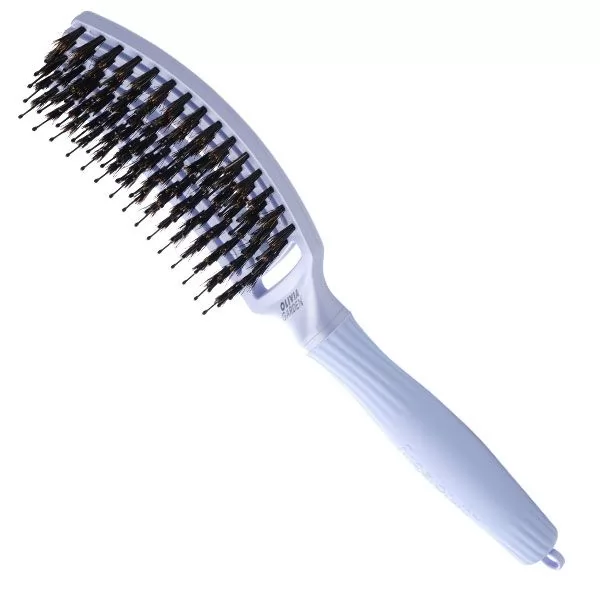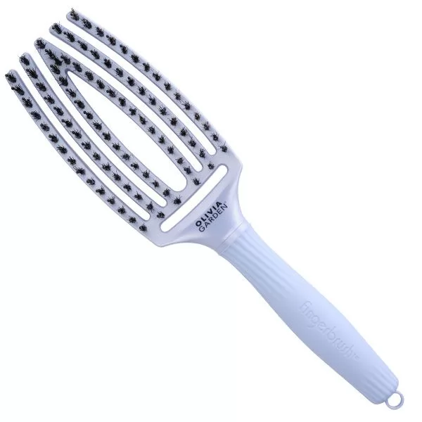 Щітки нового покоління Olivia Garden Finger Brush давно стали бестселерами продажів. Завдяки своїй унікальній формі, яка повторює вигин голови, щітка ідеально прочісує волосся, створюючи прикореневій об’єм під час сушіння. Розмір гребінця Medium ідеально підійде для волосся нормальної і середньої густини. Комбінація натуральної щетини і термостійкого нейлону дозволяє з легкістю зробити укладку, поліруючи волосся, не пошкоджуючи структуру пасом. Завдяки зубцям із захистом м’яко впливає на шкіру голову, надаючи додатковий масаж. Щітка має зручну прогумовану ручку, яка дозволяє надійно тримати його в руці і спеціальний хвостик для поділу пасм. Унікальний вентильований дизайн скорочує час укладання.