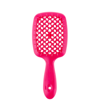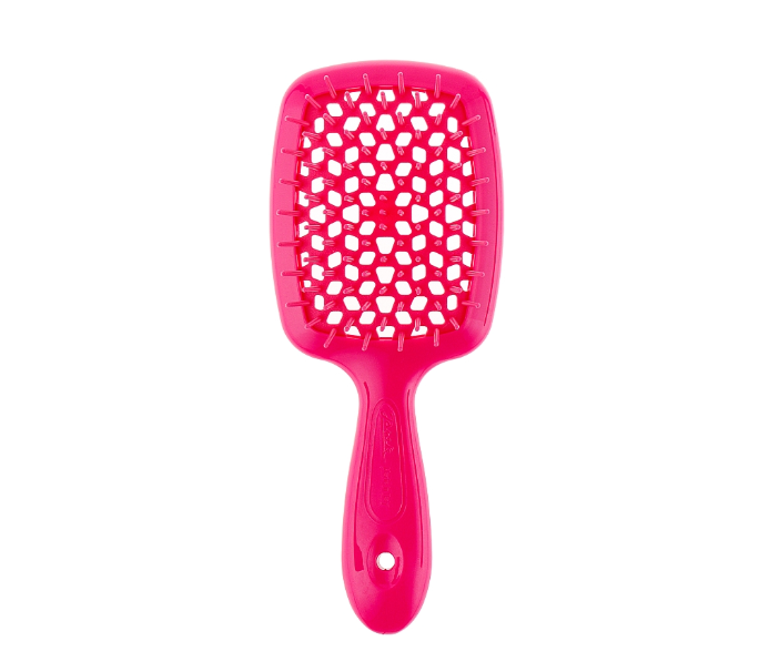 JANEKE Small Superbrush – це зменшена версія популярної моделі Superbrush The Original, що відрізняється компактними розмірами: 17.5 см завдовжки і 7 см завширшки. Щітка для волосся італійського бренду Janeke м’яко та ефективно розчісує та розплутує волосся. Щітку можна використовувати як для сухого, так і для вологого волосся, під час миття щоб забезпечити рівномірний розподіл доглядових засобів, а також під час сушіння феном для швидшого висихання волосся. Щітка має антистатичну дію на волосся, завдяки чому воно не розпушуються та менше електризується. Вона швидко і легко розчісує сплутане волосся, не вириває і не обламує волоски. Щітка Janeke Superbrush виготовлена з міцного екопластика. Широка робоча поверхня щітки обладнана великою кількістю щільних нейлонових щетинок, які легко та швидко розплутують волоски. Пневматична основа щітки має особливу запатентовану перфорацію вулика (форму бджолиних сот). Таким чином, гаряче повітря фену розподіляється рівномірно для швидкого висихання, зменшуючи негативний вплив на волосся. Зубчики, заокруглені на кінцях, ніжно масажують шкіру голови, покращують кровообіг чим стимулюють ріст волосся. Карбонове волокно на зубцях запобігає електризації волосся. Ручка гребінця ергономічна, зручно лежить у руці та не вислизає в процесі розчісування. Щітка Janeke Superbrush підходить для всіх типів волосся. Нею можна розчісувати ніжне дитяче волосся, нарощене, тонке, густе, а також кучеряве волосся. Розмір щітки Small Superbrush – 17.5 х 7 см.