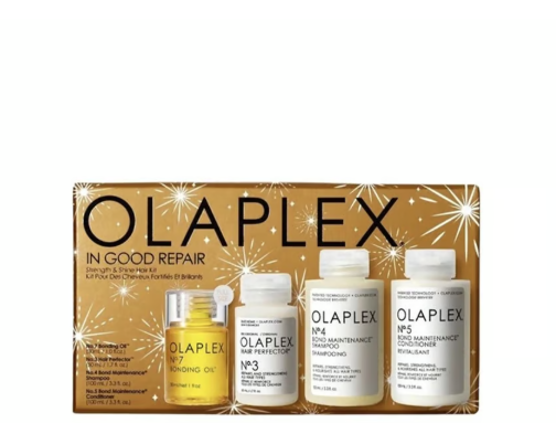Набір із чотирьох бестселерів OLAPLEX – ідеальний подарунок для будь-якої дівчини, яка мріє про здорове та доглянуте волосся. Набір містить: Olaplex Nº.3 Hair Perfector | Еліксир “Досконалість Волосся” (50 ml) Olaplex Nº.4 Bond Maintenance Shampoo | Шампунь “Система Захисту Волосся” (100 ml) Olaplex Nº.5 Bond Maintenance Conditioner | Кондиціонер “Система Захисту Волосся” (100 ml) Olaplex Nº.7 Bonding Oil | Відновлююча Олія для Волосся «крапля Досконалості» (30 ml) Підійде для усіх типів волосся, особливо сподобається пошкодженому, сухому, пористому.