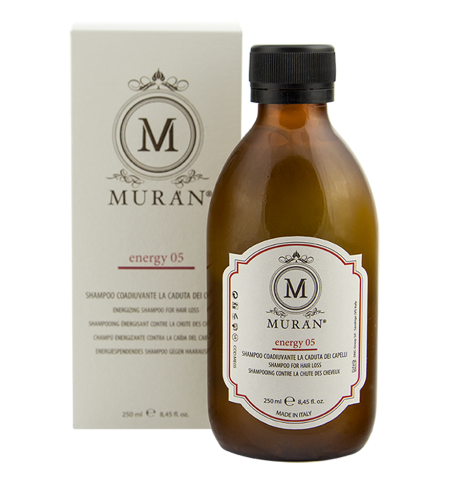 Шампунь від випадіння волосся, на основі м’яких безсульфатних ПАР, екстрактів морських водоростей Норі та ефірних олій ялівцю, ромашки, шавлії та дикої м’яти. Шампунь ретельно очищує шкіру голови, та готує її до нанесення активних засобів, найкраще буде працювати в парі з лосьйоном MURAN energy 06 lotion. Багатий на морські водорості Норі і Дульсе, розкішний тонізуючий шампунь ретельно очищає і відновлює густоту, об’єм і щільність волосся. Цінний екстракт Сереноа блокує фермент 5-альфа-редуктазу, через яку відбувається згасання функції волосяних фолікулів, і запускає активне зростання волосся. Підійде для нормальної, себопрофіцитної шкіри голови, ослабленого тонкого волосся.