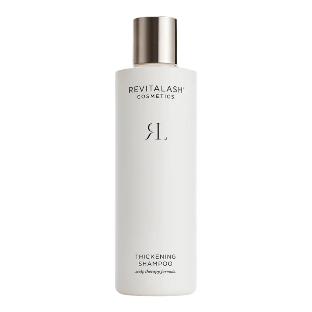 Thickening Shampoo від бренду REVITALASH – це лікувальний унісекс шампунь для збільшення густоти волосся. Шампунь містить фітодобавки, багатий на терапевтичні інгредієнти (без сульфатних миючих засобів), підтримує оптимальне здоров’я шкіри голови, зміцнює кутикулу волосся та покращує товщину волосяного стрижня, очищує, захищає від екологічного стресу. Насичена рослинними екстрактами формула містить лікувальні інгредієнти, що підтримують здоров’я шкіри голови, зміцнюють корені волосся та підвищують товщину й густоту волосся. Волосся стає густішим, пишнішим, слухнянішим й здоровим на вигляд. Шампунь не містить сульфатних миючих речовин, має систему збереження кольору фарбованого волосся, схвалений дерматологами та клінічно протестований. Це веганський продукт, не тестується на тваринах. Активні компоненти: Листя мушмули японської: підвищує товщину та густоту волосини. Кора верби: дбайливо відлущує ороговілі клітинки шкіри голови, покращуючи здоров’я волосся. Біотин: зміцнює волосся й надає об’єму, завдяки чому волосся виглядає густішим. Пантенол: сприяє гідратації й надає здорового сяйва.