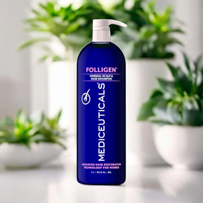 FOLLIGEN™- це шампунь проти випадіння та стоншення волосся у жінок. Шампунь найкраще підходить для нормальних і схильних до жирності волосся та шкіри голови. Він якісно очищає шкіру голови, надає об’єму і щільності тонкому, ослабленому волоссю без відчуття обтяження. Ключові інгредієнти: PureZero™: формула без SLS (лаурилсульфат натрію) ніжно очищає волосся та шкіру голови, не пересушуючи їх і не порушуючи гідроліпідний бар’єр. Підходить для всіх типів волосся. Triaminocoptinol™: сприяє зниженню надмірного випадіння волосся і стимулює ріст нового. Впливає на три основні причини випадіння волосся: фермент 5-альфаредуктазу (бере участь в утворенні ДГТ), недостатній кровообіг та слабке закріплення волосся у фолікулах. NutraCell™: стимулює кровообіг шкіри голови для кращого засвоєння корисних речовин. Femmigen™: очищає та детоксикує шкіру голови від ДГТ. Комплекс, розроблений для жінок будь-якого віку, які страждають від випадіння та стоншення волосся. Color Retention Complex™: захищає фарбоване волосся від УФ-випромінювання та вимивання кольору для більш виразного та стійкого результату фарбування. Надає волоссю натурального блиску.