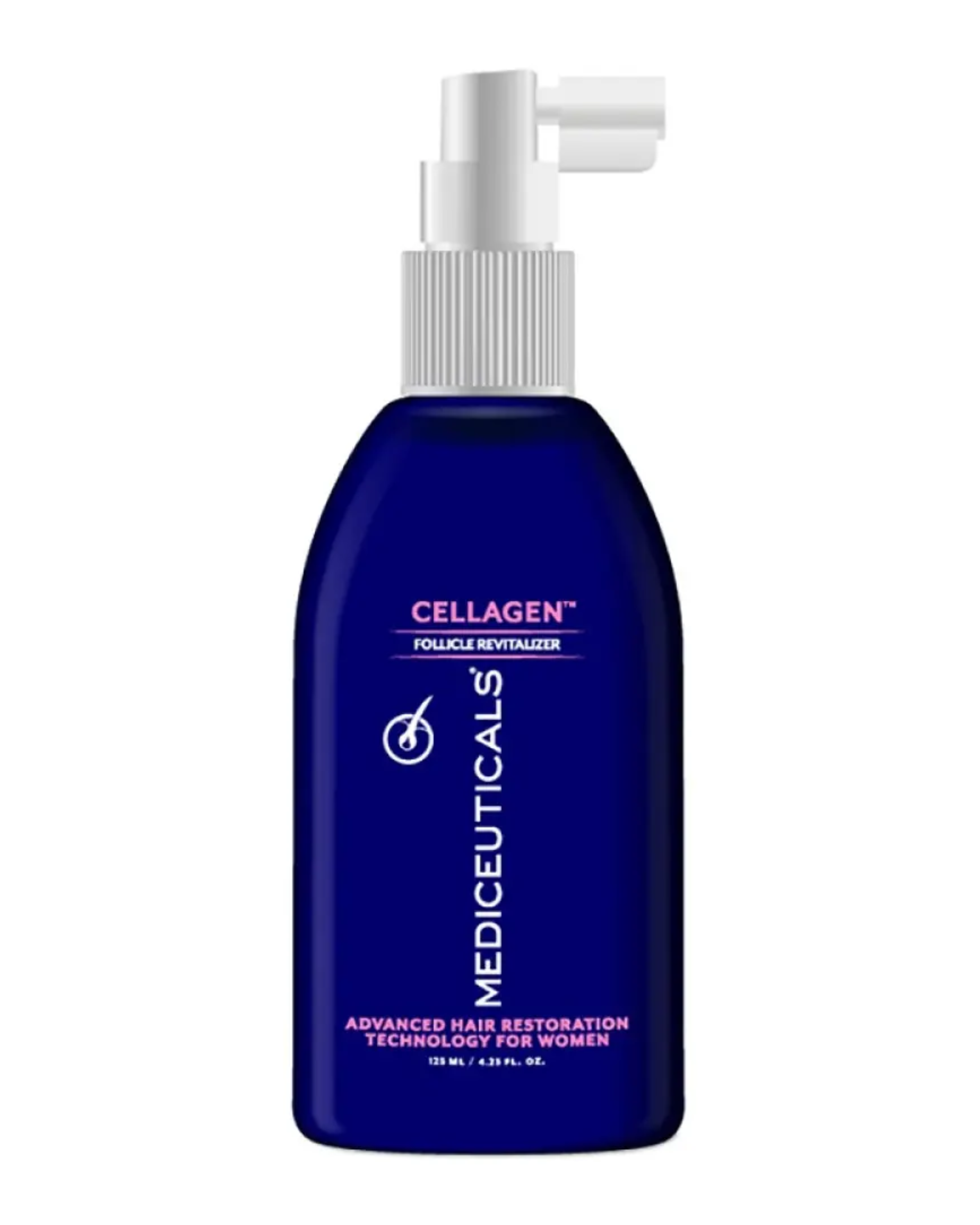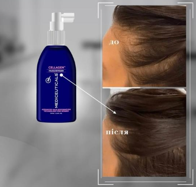 CELLAGEN™ – це ревіталізуюча сироватка створена спеціально для жінок. Ревіталізант для волосяних фолікулів та шкіри голови стимулює ріст волосся і підтримує здоров’я шкіри голови у жінок. Покращує мікроциркуляцію шкіри голови, блокує Дигідротестостерон (ДГТ). Ключові інгредієнти: Triaminocoptinol™: сприяє зниженню надмірного випадіння волосся і стимулює ріст нового. Впливає на три основні причини випадіння волосся: фермент 5-альфаредуктазу (бере участь в утворенні ДГТ), недостатній кровообіг та слабке закріплення волосся у фолікулах. NutraCell™: стимулює кровообіг шкіри голови для кращого засвоєння корисних речовин. Femmigen™: очищає та детоксикує шкіру голови від ДГТ. Комплекс, розроблений для жінок будь-якого віку, які страждають від випадіння та стоншення волосся.